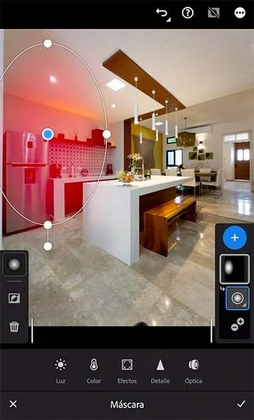 Como utilizar la herramienta de máscaras usando el ajuste de degradado radial para iluminar una parte o rincon en una propiedad.Borrador