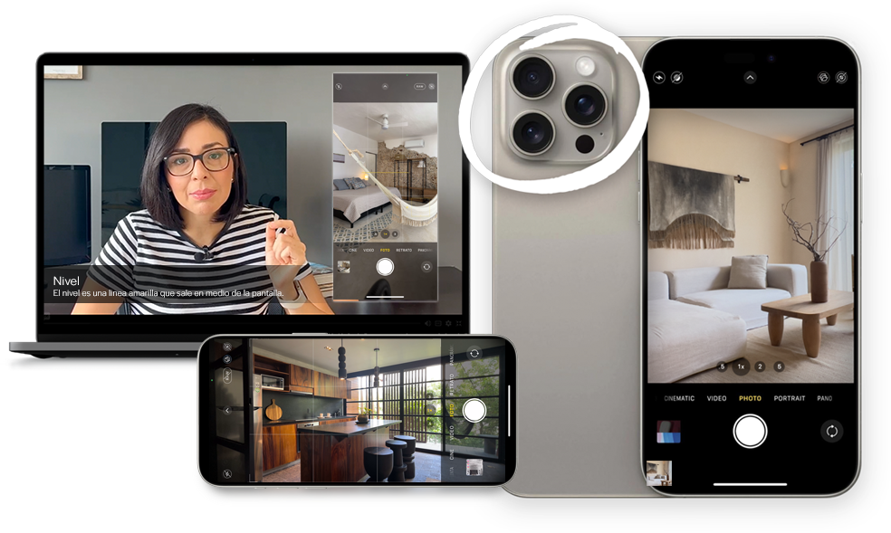 No perderá tiempo con teoría genérica. Cada lección está enfocada en situaciones reales que su equipo enfrenta diariamente: espacios pequeños, iluminación difícil, ventanas sobreexpuestas y cómo crear recorridos visuales que venden propiedades más rápido.